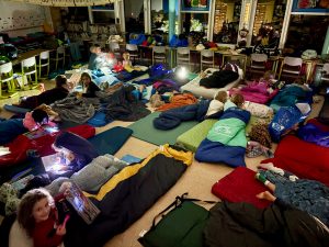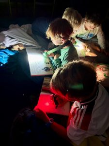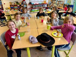 Am 30. Oktober war es endlich soweit! Um 18.30 Uhr trafen sich die Kinder der Klasse 2Bi mit ihrer Lehrerin im leergeräumten Klassenzimmer, um zusammen eine Lesenacht mit den Abenteuergeschichten von Cowboy Klaus und dazu passenden Spielen zu verbringen. Nach der Gutenachtgeschichte wurde noch im Schlafsack mit Taschenlampe weitergelesen. Wir stärkten uns am nächsten Morgen mit einem gemeinsamen Frühstück und räumten unser Klassenzimmer wieder ein. Es war für uns alle ein besonderes und unvergessliches Erlebnis!