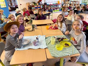 Am 30. Oktober war es endlich soweit! Um 18.30 Uhr trafen sich die Kinder der Klasse 2Bi mit ihrer Lehrerin im leergeräumten Klassenzimmer, um zusammen eine Lesenacht mit den Abenteuergeschichten von Cowboy Klaus und dazu passenden Spielen zu verbringen. Nach der Gutenachtgeschichte wurde noch im Schlafsack mit Taschenlampe weitergelesen. Wir stärkten uns am nächsten Morgen mit einem gemeinsamen Frühstück und räumten unser Klassenzimmer wieder ein. Es war für uns alle ein besonderes und unvergessliches Erlebnis!